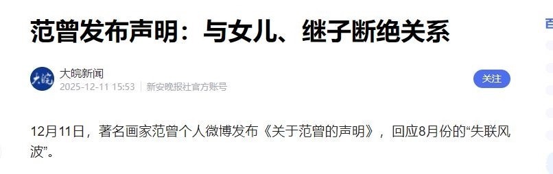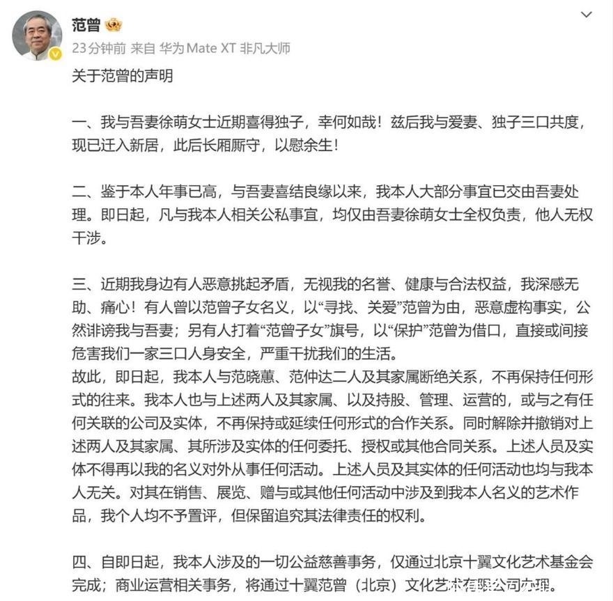 更有甚者说她与外人联手做局,而女儿范晓惠的一则“寻找父亲”的声明,似乎侧面印证了家中生变,而12月11日的这份声明,彻底反转了剧本。